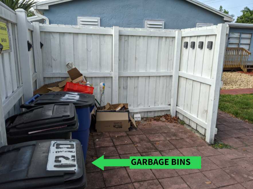 THE IMAGE ABOVE IS INSIDE THE ENCLOSURE WHERE THE GARBAGE BINS ARE LOCATED