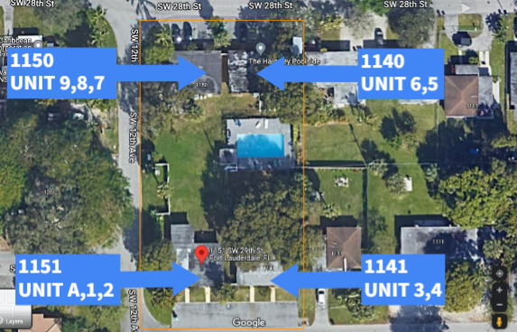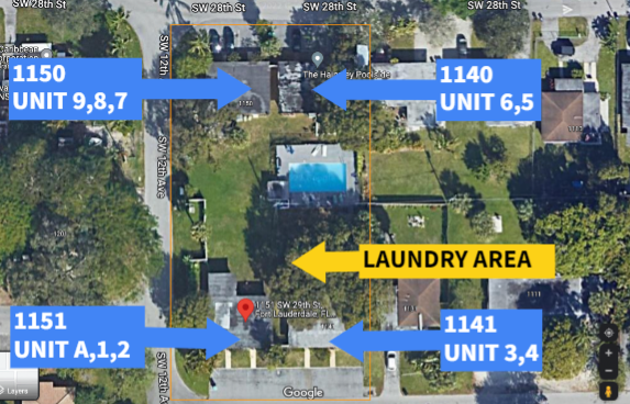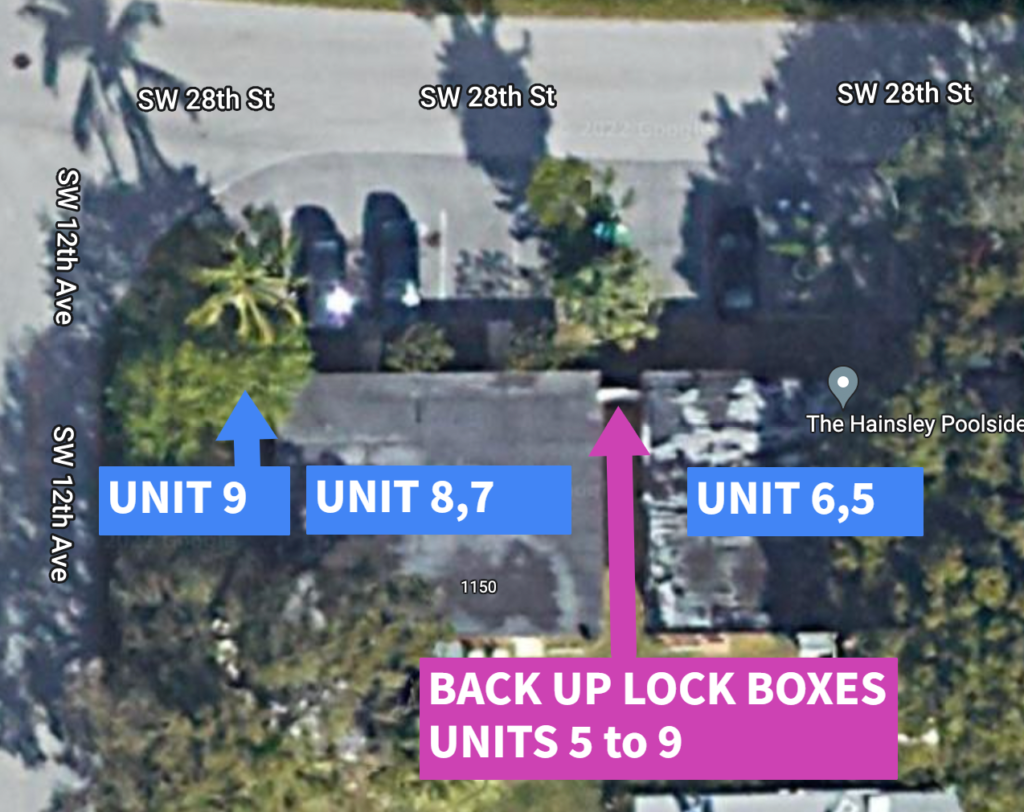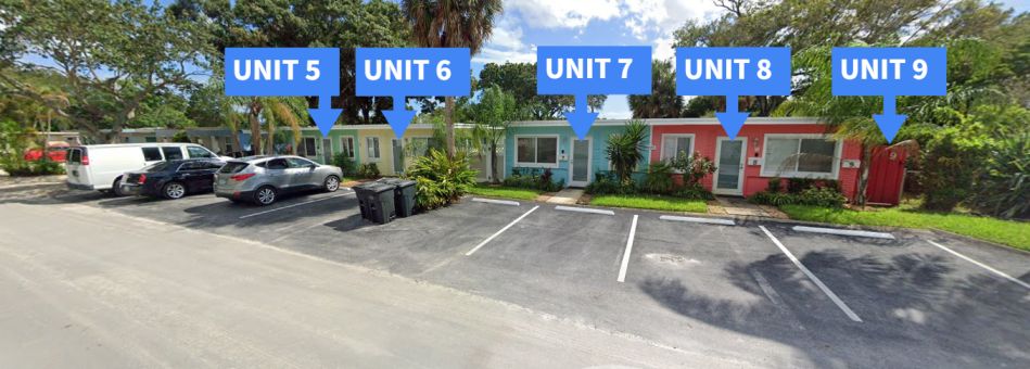 UNIT 9 ENTRANCE IS THE RED GATE SHOWN ON THE FAR RIGHT OF THE PICTURE.