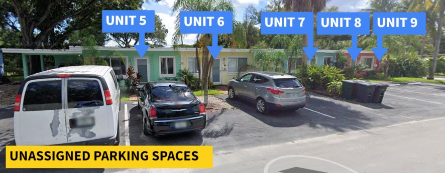 THERE ARE NO ASSIGNED PARKING SPACES. GUESTS CAN PARK IN ANY OF THE AVAILABLE PARKING SPACE.