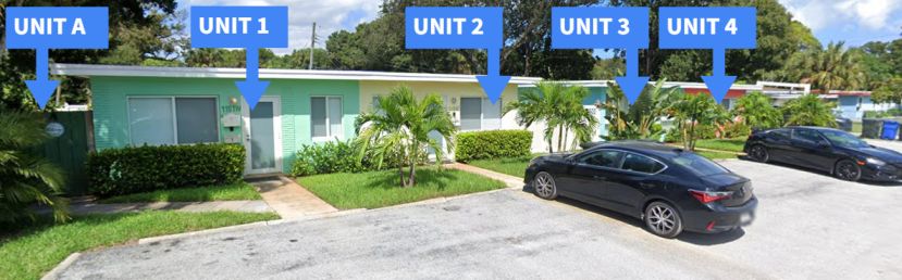 UNIT A ENTRANCE IS THE GREEN GATE SHOWN ON THE FAR LEFT OF THE PICTURE.